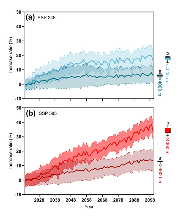 青藏高原不同海拔非生长季CO2排放在两种气候情景下的增幅
