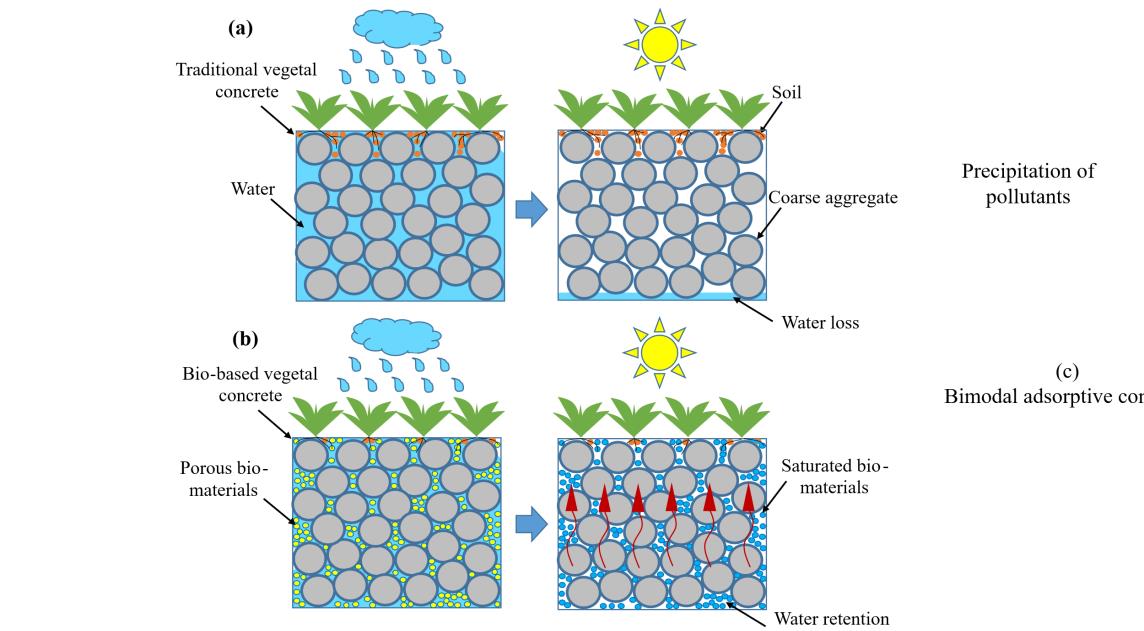 (a)普通植生混凝土和(b)生物基植生混凝土保水能力示意