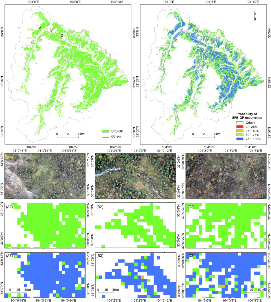 团队成功构建了大熊猫国家公园王朗片区首套10米分辨率的主食竹空间分布数据集,总体精度超过83%。这一数据填补了高分辨率主食竹分布图的空白,为评估大熊猫食物资源、规划生态廊道提供了关键的基础数据。