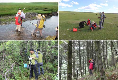 为开展我国西南地区样区尺度森林、灌木、草地、农田等生态系统固碳参量的遥感监测工作,中科院碳专项生态固碳项目遥感课题“西南地区固碳参量遥感监测”子课题负责人李爱农研究员组织科考队伍,于2013年8月至10月圆满完成了盐亭紫色土农业生态试验站、普定喀斯特生态系统观测研究站、西双版纳热带雨林生态系统定位研究站、哀牢山森林生态系统定位研究站及其周边区域的地面调查工作。至此,遥感课题在西南地区布设的10个50km×50km样区野外工作已全部完成,其中贡嘎山和茂县样区工作于2011年完成;拉萨、林芝、那曲和若尔盖样区工作于2012年完成;盐亭、普定、西双版纳和哀牢山样区工作于2013年完成。