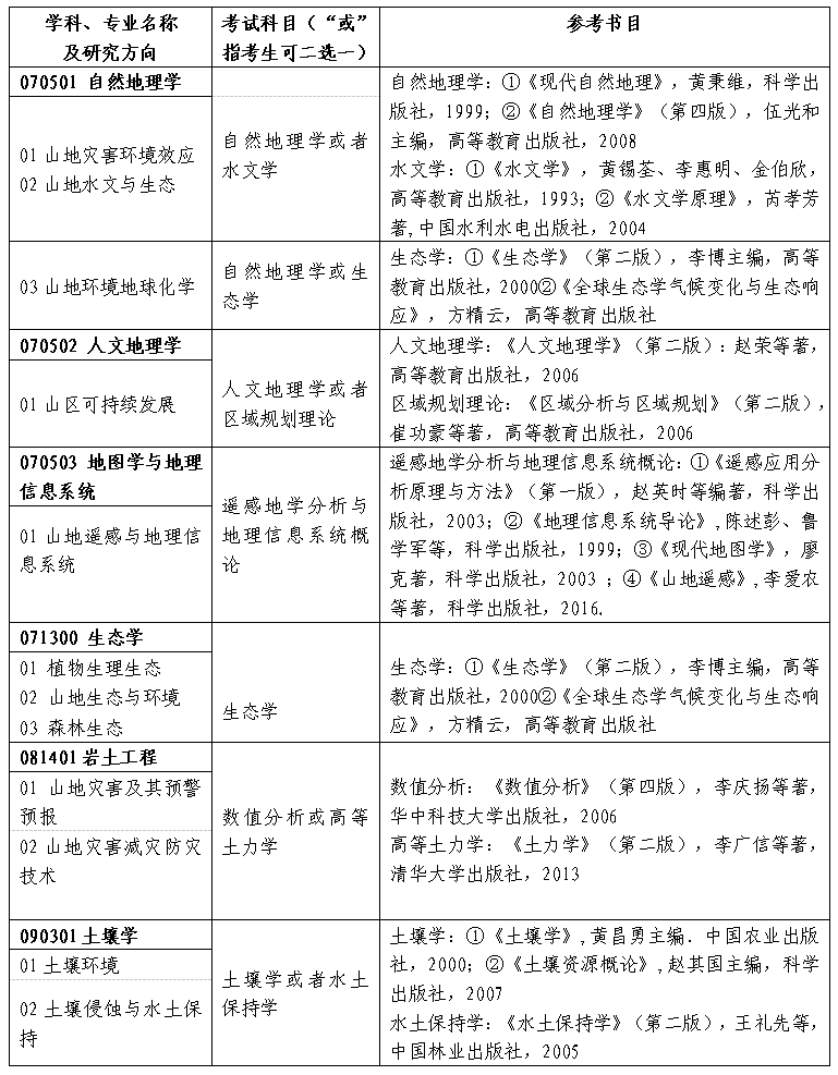 考生在报名时需要向成都山地所研究生部提交下列材料: