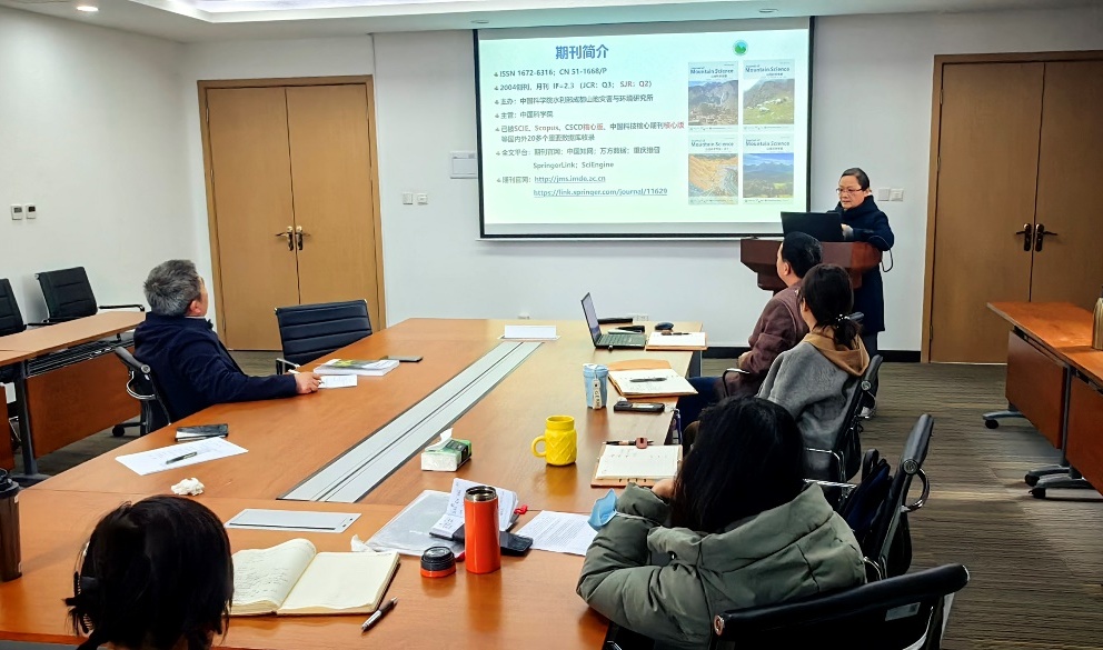 4月2日,党委书记、副所长谭多财调研学术期刊中心,了解所办英文学术期刊 Journal of Mountain Science 和中文学术期刊《山地学报》的整体工作和运行情况,为期刊长远可持续发展出谋划策。