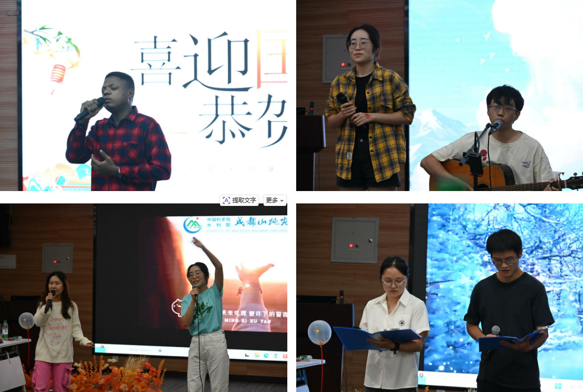 9月30日上午,成都山地所组织研究生开展“喜迎国庆・恭贺中秋”联欢会。所长康世昌、纪委书记周鹏浩出席活动。