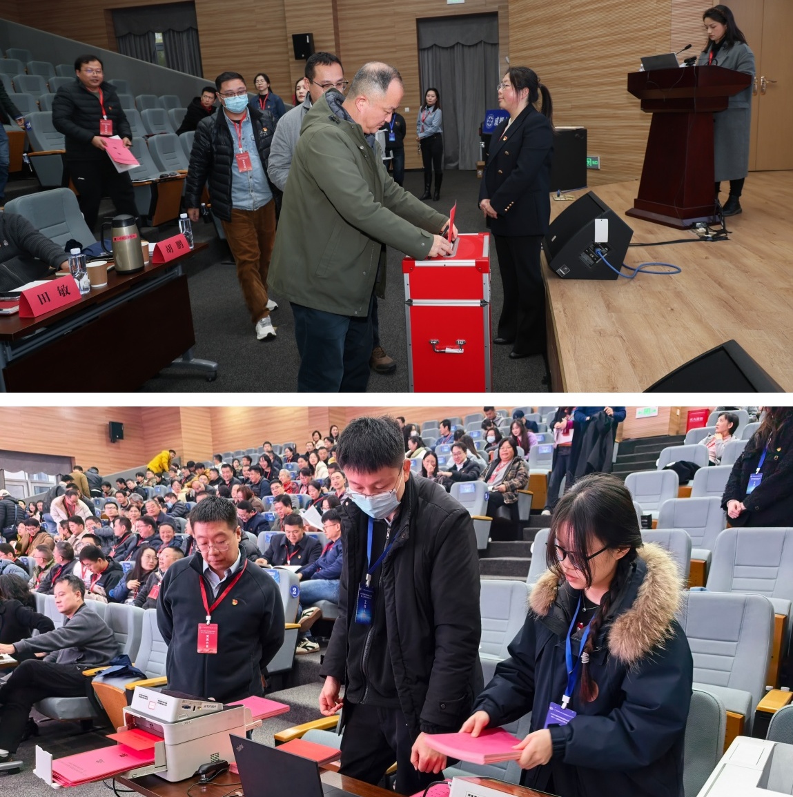 大会审议并通过了《关于党费收缴、使用和管理情况的报告》和《大会选举办法》,表决通过了总监票人、监票人和计票人名单。王嘉图同志代表上级党组织宣读了《关于两委委员候选人预备人选的批复》。大会通过无记名投票差额选举的方式,选举出代丹、欧阳朝军、周明华、周鹏浩、赵伟、康世昌、谭多财(按姓氏笔画为序)等7名同志为第十二届党委委员,选举出田宏岭、杨宗佶、范建容、周鹏浩、魏达(以姓氏笔画为序)等5名同志为新一届纪委委员。