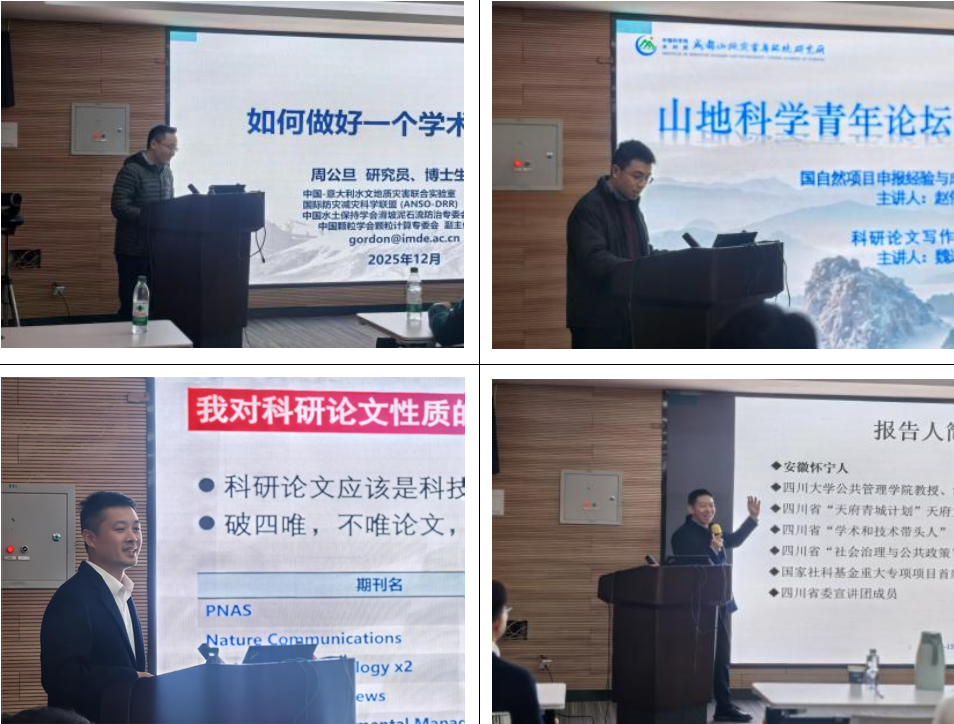 此次系列讲座由人事教育处、党委办公室联合青年创新促进会成都山地所小组共同举办,紧扣青年职工成长核心需求,解答了大家在职业起步阶段的困惑,搭建了交流学习、共同进步的平台。后续,研究所将持续依托青年论坛等载体,推出更多的学术交流与能力提升活动。
