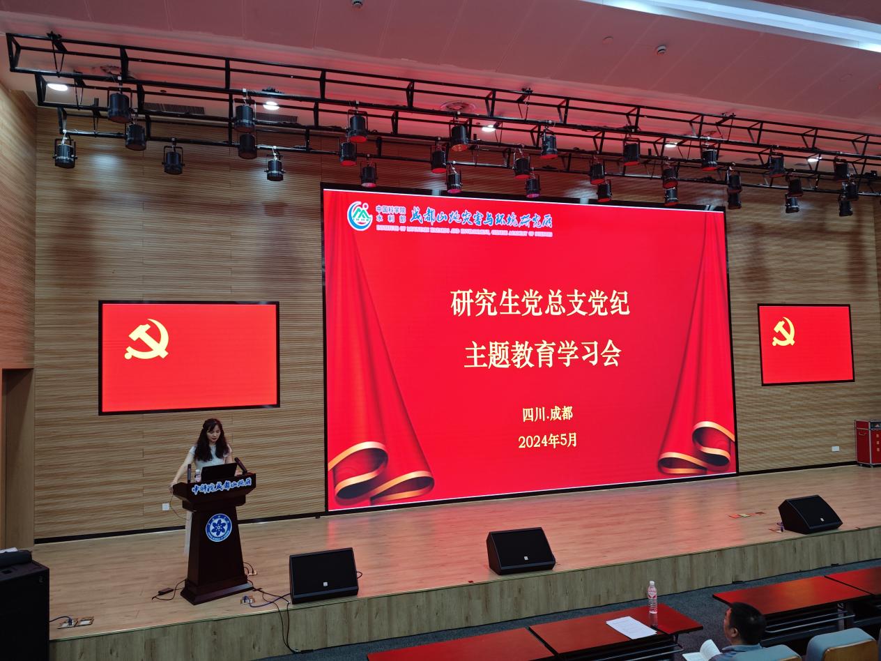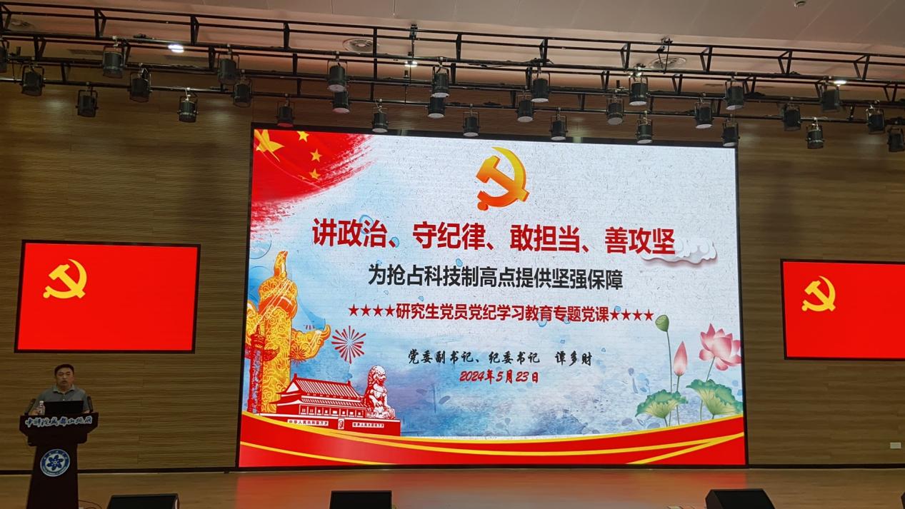 2024年5月23日,研究生党总支按所党委工作部署召开了党员大会,专题开展党纪学习教育。全体研究生党员及部分入党积极分子参加了学习。会议由研究生党总支书记姚彩云主持,所党委副书记、纪委书记谭多财应邀讲授党课。