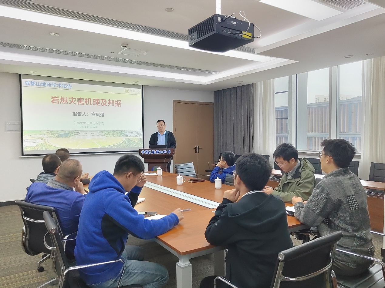 11月4日,中国科学院青年创新促进会成都山地所小组举行山地科学大讲堂第三期活动,邀请东南大学宫凤强教授作了题为“岩爆灾害机理及判据”的学术报告。山地自然灾害与工程安全重点实验室(中国科学院)副主任欧阳朝军及10余人科研人员聆听了报告。青促会山地所小组组长栗帅副研究员主持报告会。