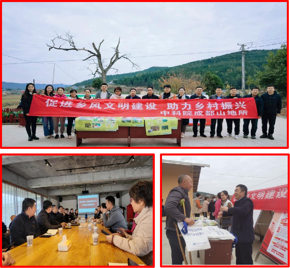 在壮岭村,山地所机关党支部围绕减轻灾害风险,提升村民防灾减灾、自救互救的意识和能力,组织开展了防灾减灾和“促进乡风文明”宣传活动,介绍了山地灾害相关的防灾减灾知识,向壮岭村村委会捐赠了《如何防范地质灾害》科普宣传图,为村民代表发放了《应急救援小百科-地质灾害》等图书、图册。本次活动还调研了“剑阁剑北现代化粮油基地示范区”和成都分院系统单位帮扶项目建设情况。