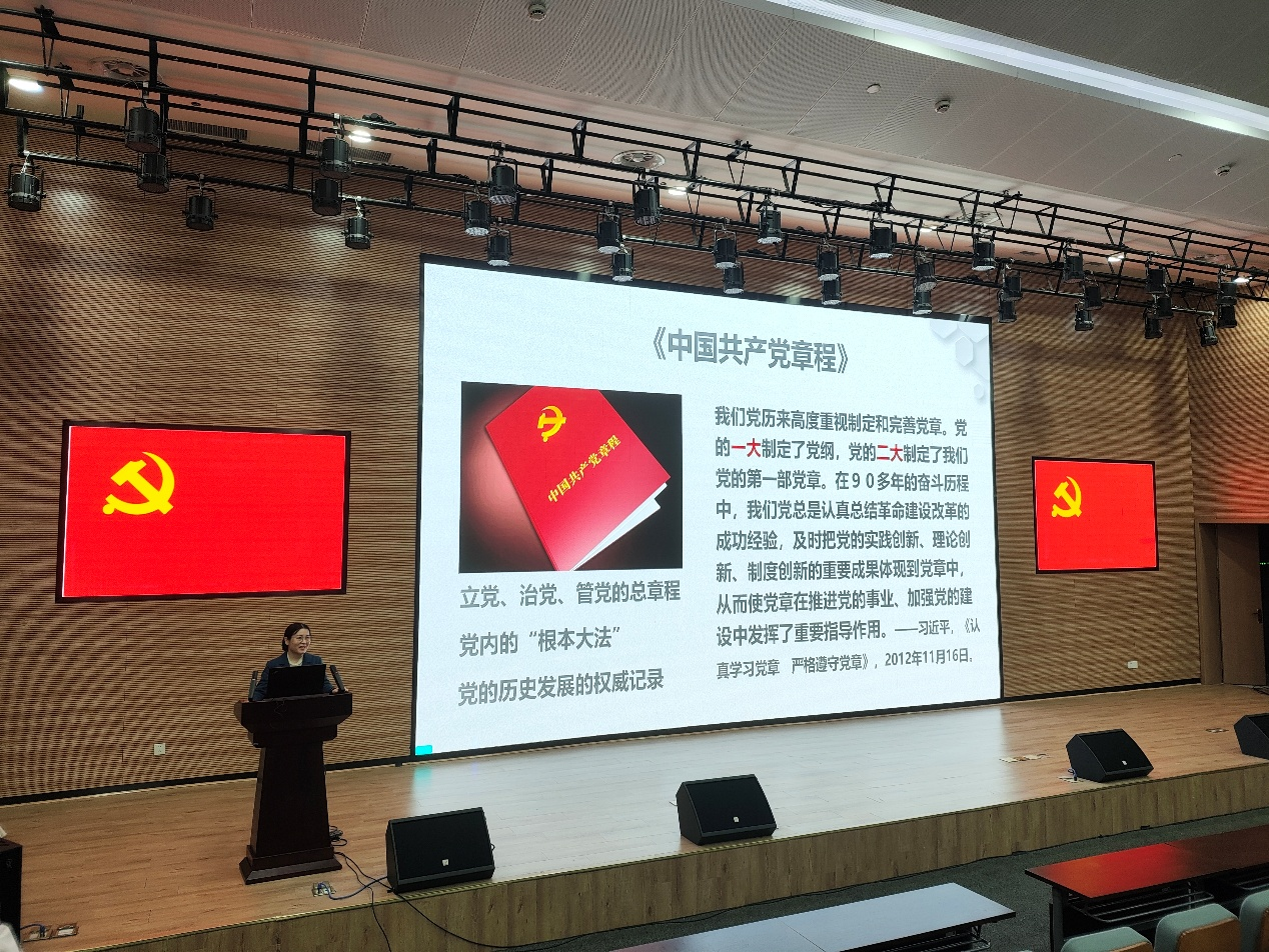 廖洪兰教授以《从党章发展历程看中国共产党辉煌成就》为题,从党章的历史演变切入,系统梳理了党的建设发展脉络。她指出,党章作为党的根本大法,镌刻着党的初心使命,指引着党的事业发展方向。通过对不同历史时期党章的对比分析,廖教授深刻阐述了党章如何适应时代要求不断完善,生动展现了中国共产党自我革命、与时俱进的政治品格。她强调,青年党员要以党章为镜,坚定理想信念,牢记“国之大者”,在科研工作中践行使命担当。