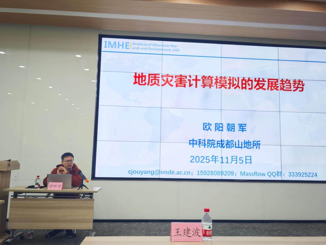 培训特邀国家超级计算成都中心常务副主任王建波博士、山地自然灾害与工程安全重点实验室副主任欧阳朝军研究员作主题报告。两位专家围绕超智融合与科学智能、超级计算与数字孪生,以及高性能计算、人工智能在地质灾害研究中的应用、灾害动力学模拟、AI 辅助隐患识别等方向,系统分享了相关研究进展与前沿动态。