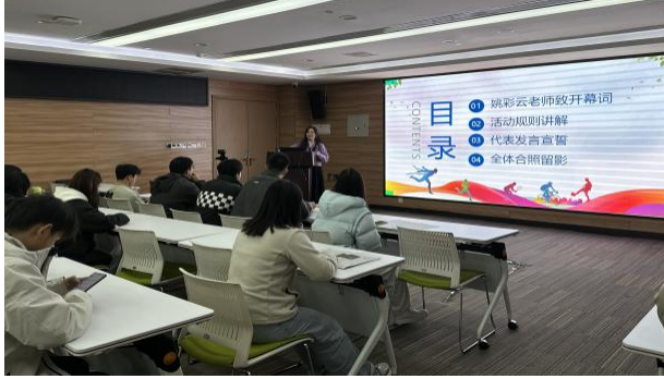 活动工作小组详细讲解了跑步路线规划、线上打卡操作流程及积分统计规则,明确活动各环节要求,为后续21天打卡活动有序开展奠定基础。2025级硕士生胡淼作为学生代表分享了参与活动的热切期待,并带领在场师生宣誓,倡议大家以诚信参与、公平竞争的态度投入活动,展现国科大研究生的良好风貌。